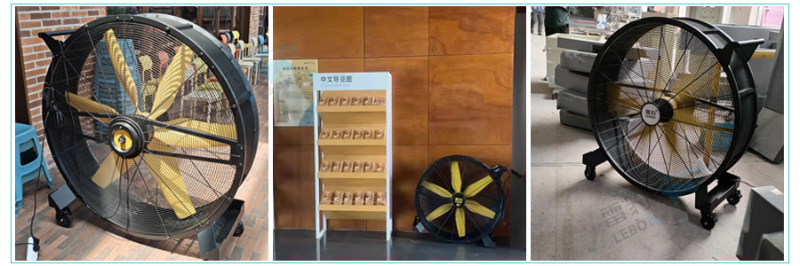 该博物馆此前尝试多种传统降温方式均有短板:中央空调满负荷运行能耗居高不下,且送风不均,近风口过冷、远风口仍闷热;普通落地风扇覆盖范围小、降温效果有限,且多台叠加使用影响场馆美观。经多方考察对比、现场试机后,博物馆运营方最终选定我司雷豹EF3622D移动风机,打造高效节能的通风降温方案。